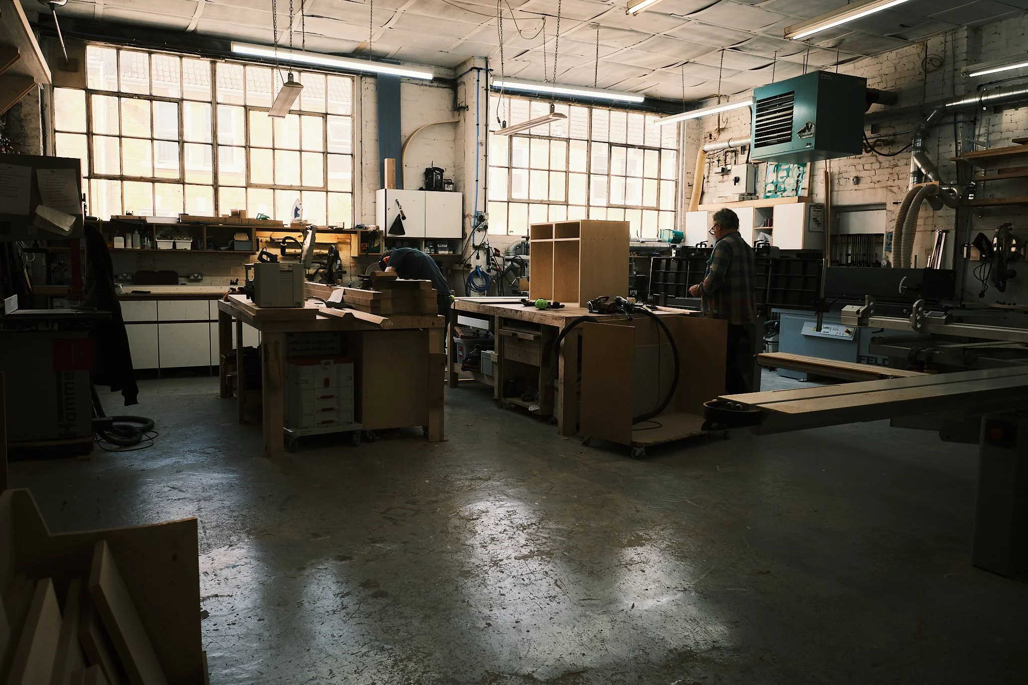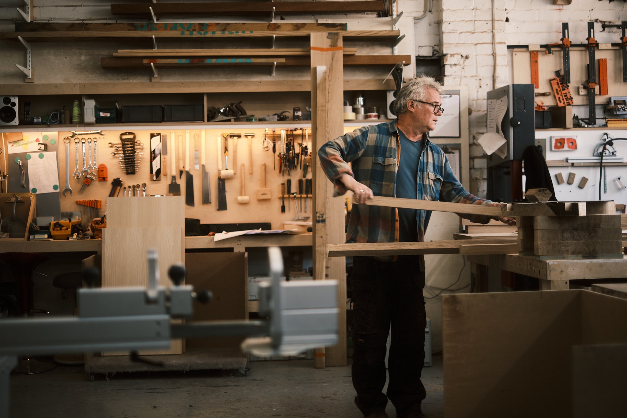 It had everything you want from an environment like this. Tools worn through use, stacks of timber, benches full of works in progress, beautiful natural light pouring through industrial windows, and a real sense of focus and movement throughout the space.